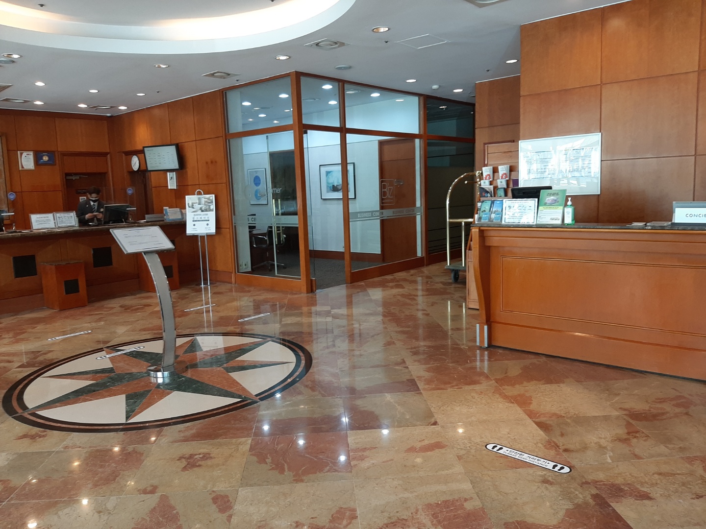 노보텔 엠버서더 독산의 로비는 그리 넓진 않지만, 깔끔하다. 친절하신 직원분들께서 체크인 수속을 도와주신다. 용산에 있는 5성급 노보텔 호텔에도 투숙해봤는데, 확실히 5성급보다는 4성급이 규모는 작지만 4성급에 걸맞게 고급스러운 것도 사실이다. 이곳의 엘리베이터는 투숙객만 이용할수있도록 카드키를 대야 층수를 누를 수 있다. 즉, 배달음식을 시켰다면 배달원분께서 올라올수 없으므로 로비에서 받아야 한다.